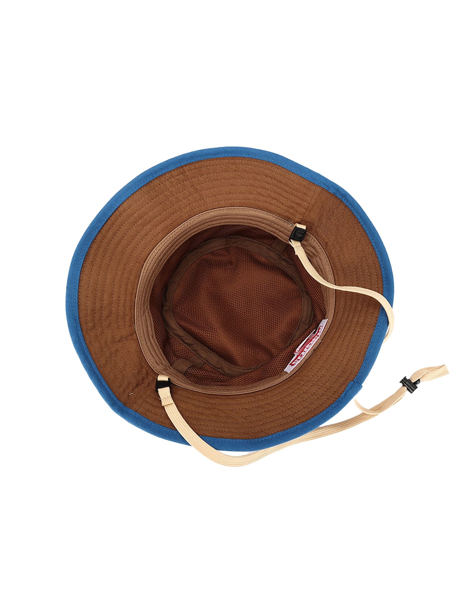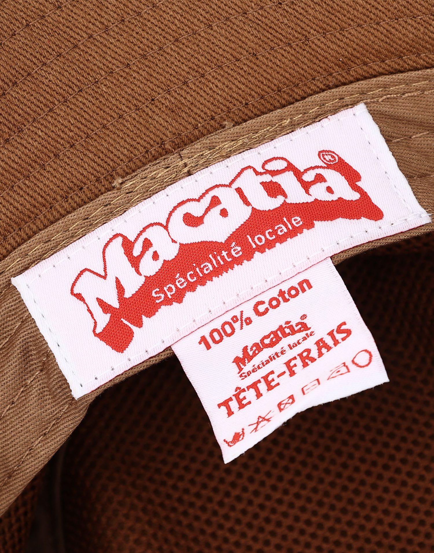 100% coton, cordon ajustable et détachable. Couleur cream, contour de finition bleu.